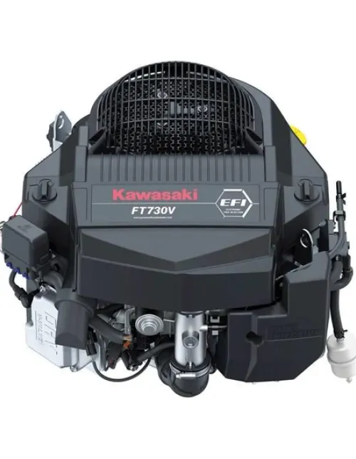 The Kawasaki FT730V-W00-S vertical engine has a 1-1/8" x 4-9/32" crankshaft and a maximum rating of 26.0 HP at 3600 RPM. Featuring a displacement of 726cc and electronic fuel injection (EFI), this FT Series Kawasaki engine offers improved fuel efficiency, easier starting, consistent blade speed and reduced emissions compared to a carbureted engine. Kawasaki's patented Vortical Air Filtration system provides superior debris management for professional turfcare applications such as golf course management and commercial landscaping. This engine commonly powers select zero-turns and commercial riding lawn mowers/tractors made by Ariens, Bobcat, Dixie Chopper, Ferris, MTD, Kubota, Scag, Spartan and Stinger. Muffler not included.